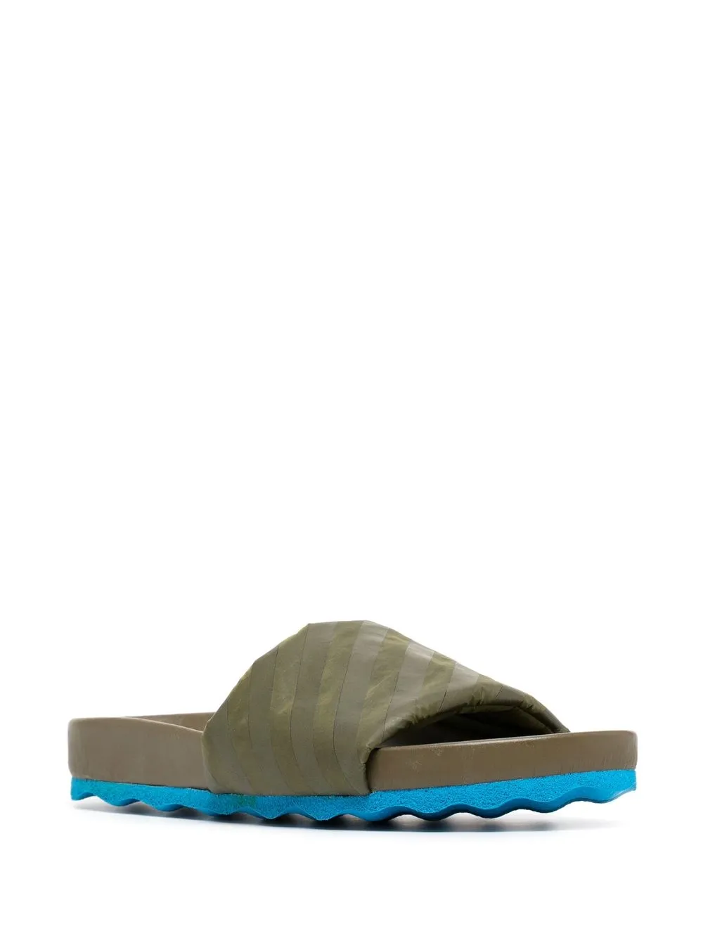 Subtly branded, these Off-White slides feature the label’s signature Diag-stripe in a tonal green design on the upper strap. A contrasting blue sole adds a contemporary finish.