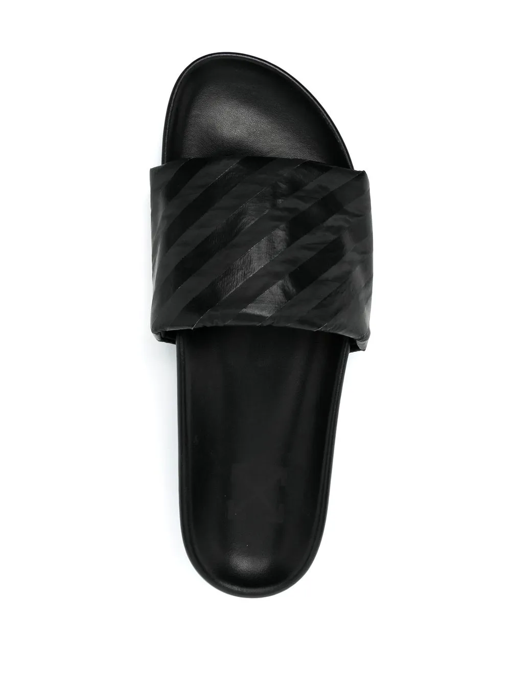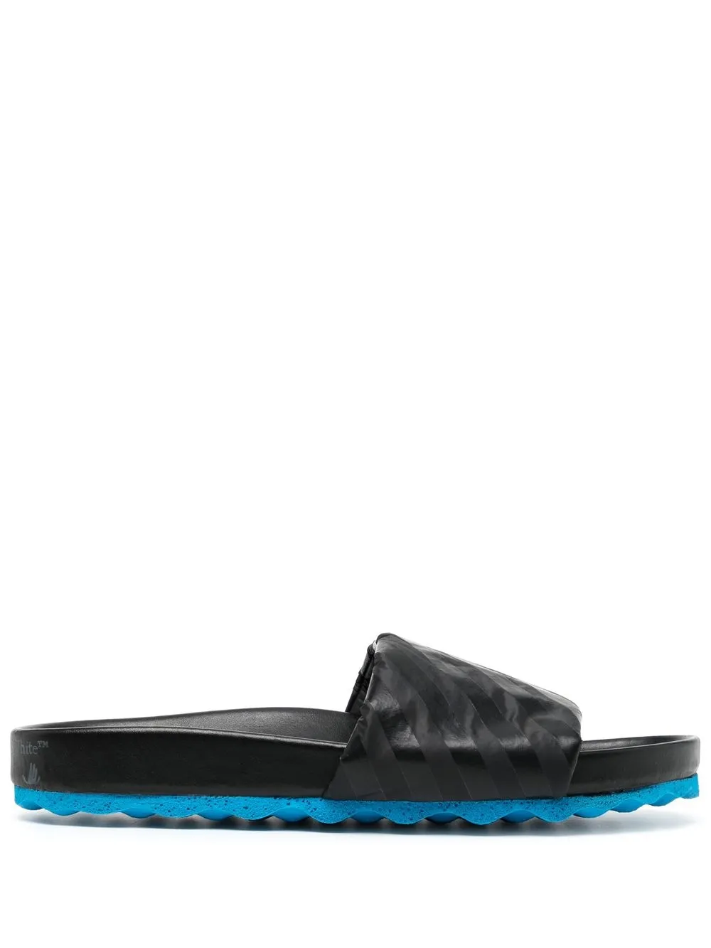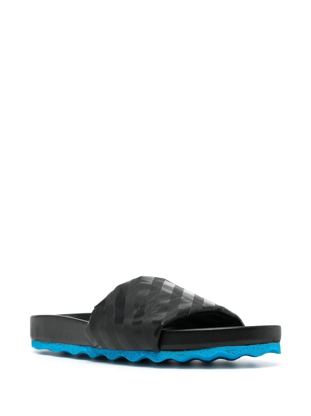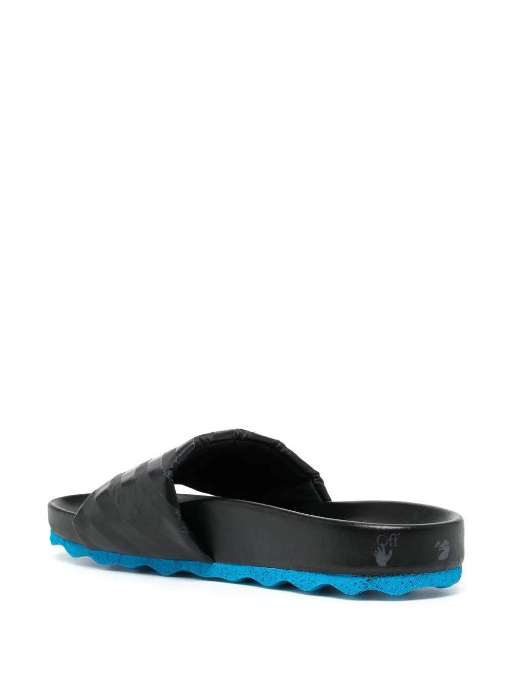 Subtly branded, these Off-White slides feature the label’s signature Diag-stripe in a tonal black design on the upper strap. A contrasting blue sole adds a contemporary finish.