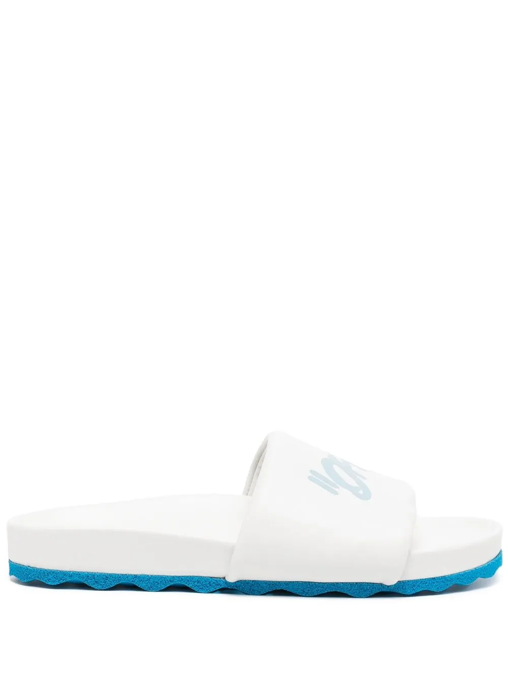 Subtly branded, these light grey slides feature the label’s signature Quote motif in blue on the upper strap. A matching sole adds a contemporary finish.