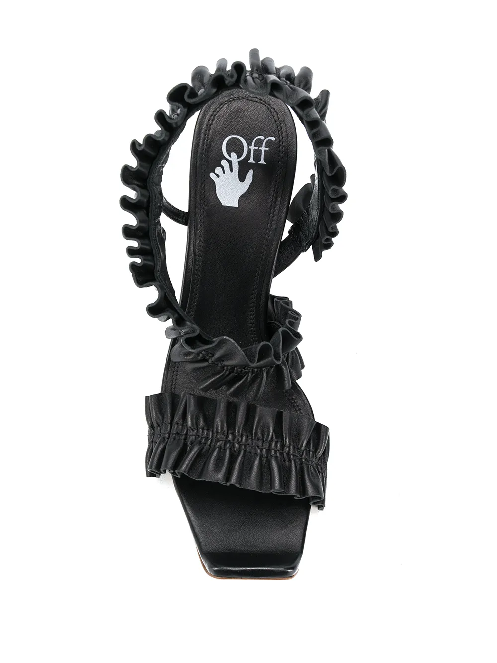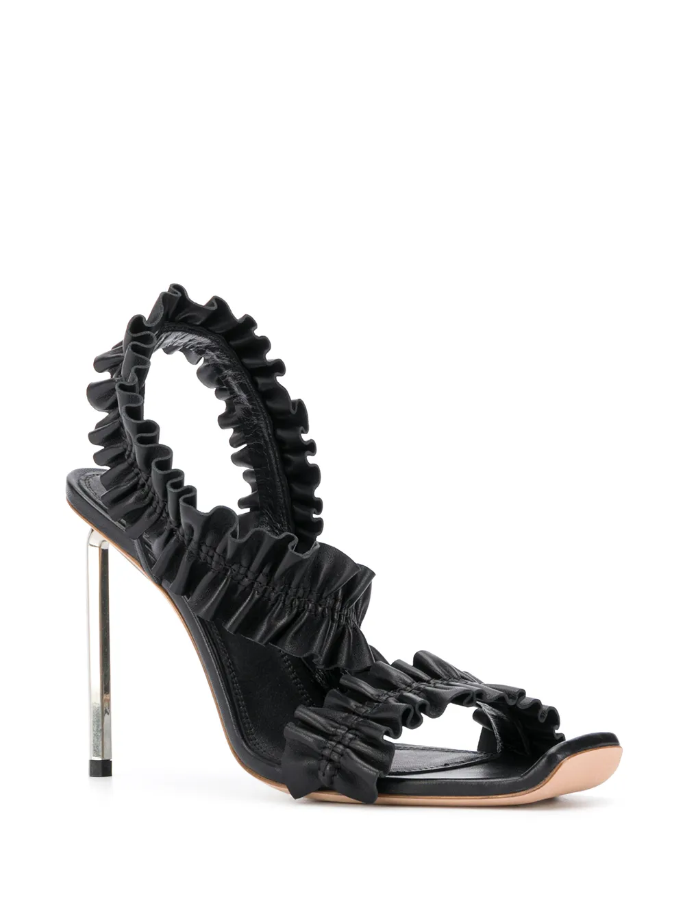 Reach new heights. Let your sandals be the centre of your look, with this Allen pair from Off-White. Finished with ruffled crossover straps of leather, the sky-scraper pair are placed atop a stiletto heel for added drama.