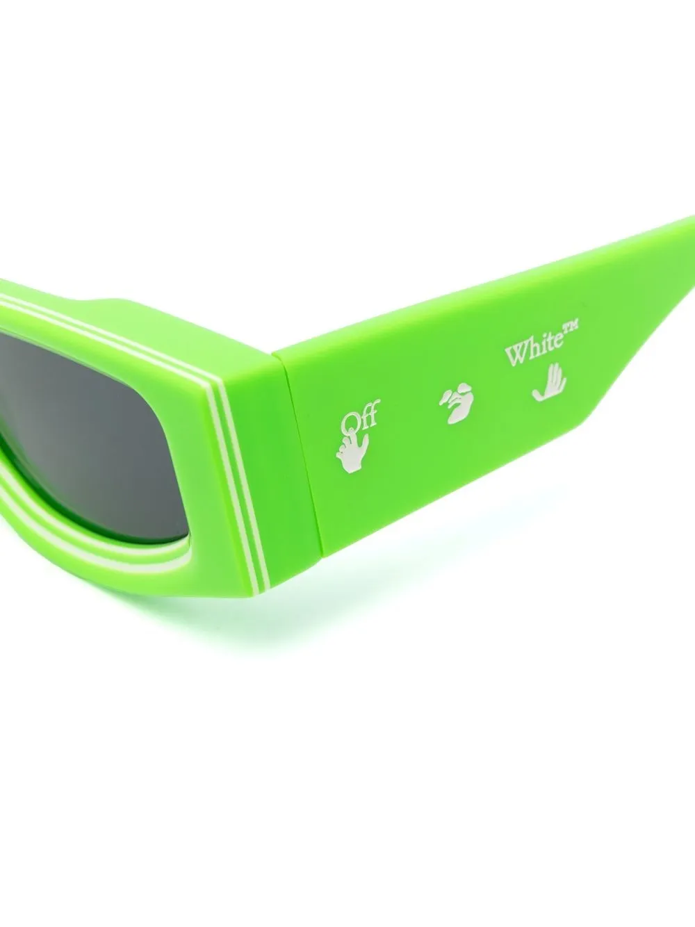 Off-White imagines these Andy sunglasses in a lime green hue. This creates a lively finish and bold appeal typical of the brand’s aesthetic.