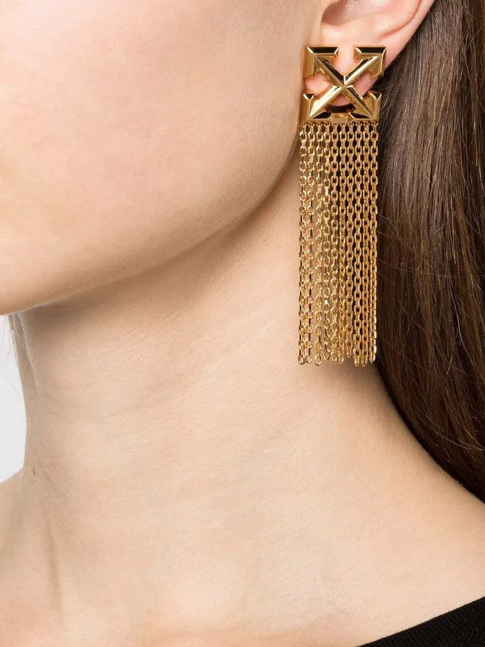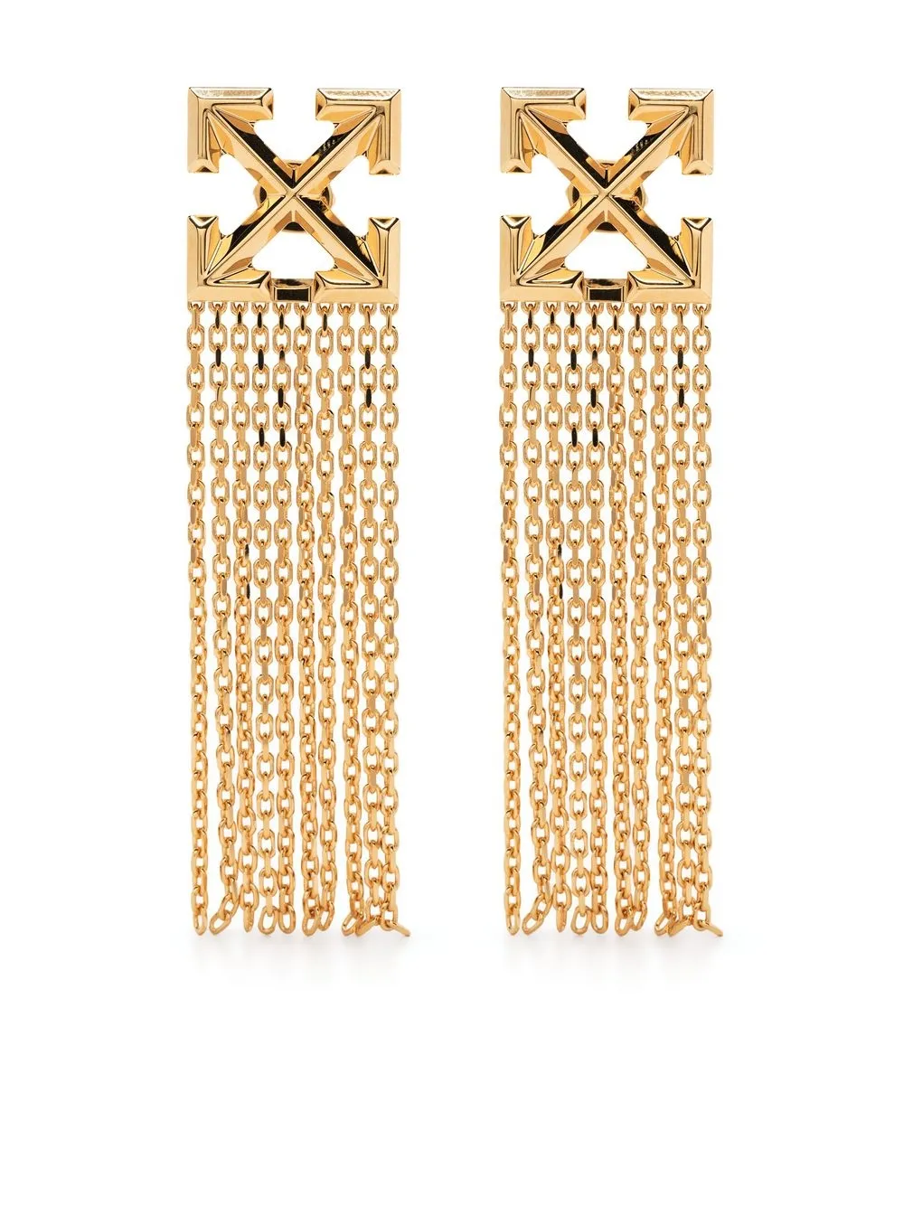 With a polished gold-tone metal construction boasting the brand’s signature Arrows motif, these post-back earrings from Off-White are finished with a chain-link fringed edge for a bold look.