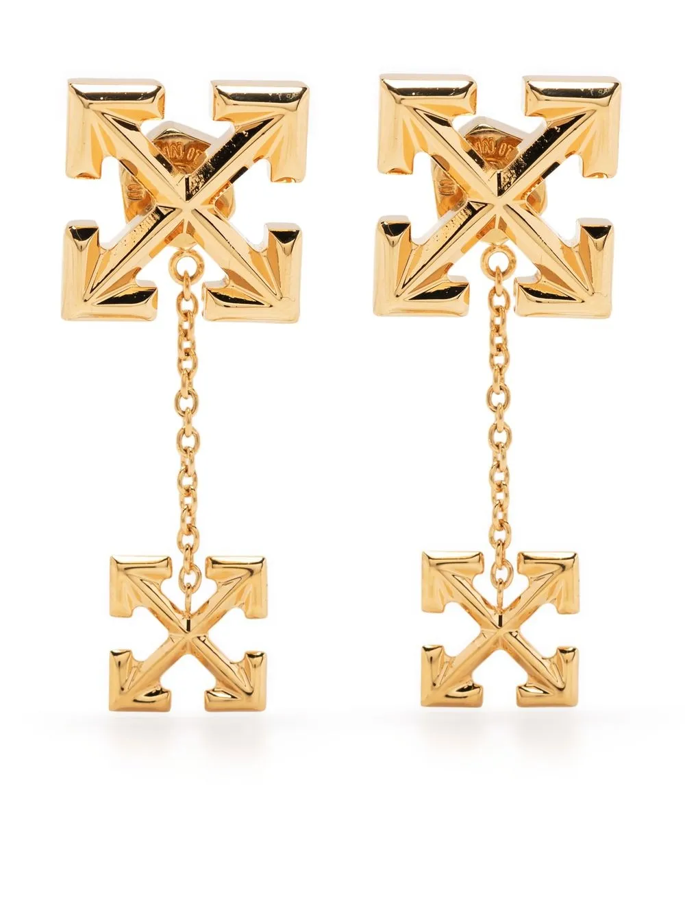 Cast from gold-tone brass, these Off-White earrings showcase a fun new way of donning the brand’s coveted Arrows motif, with a drop design shaped after the signature logo.