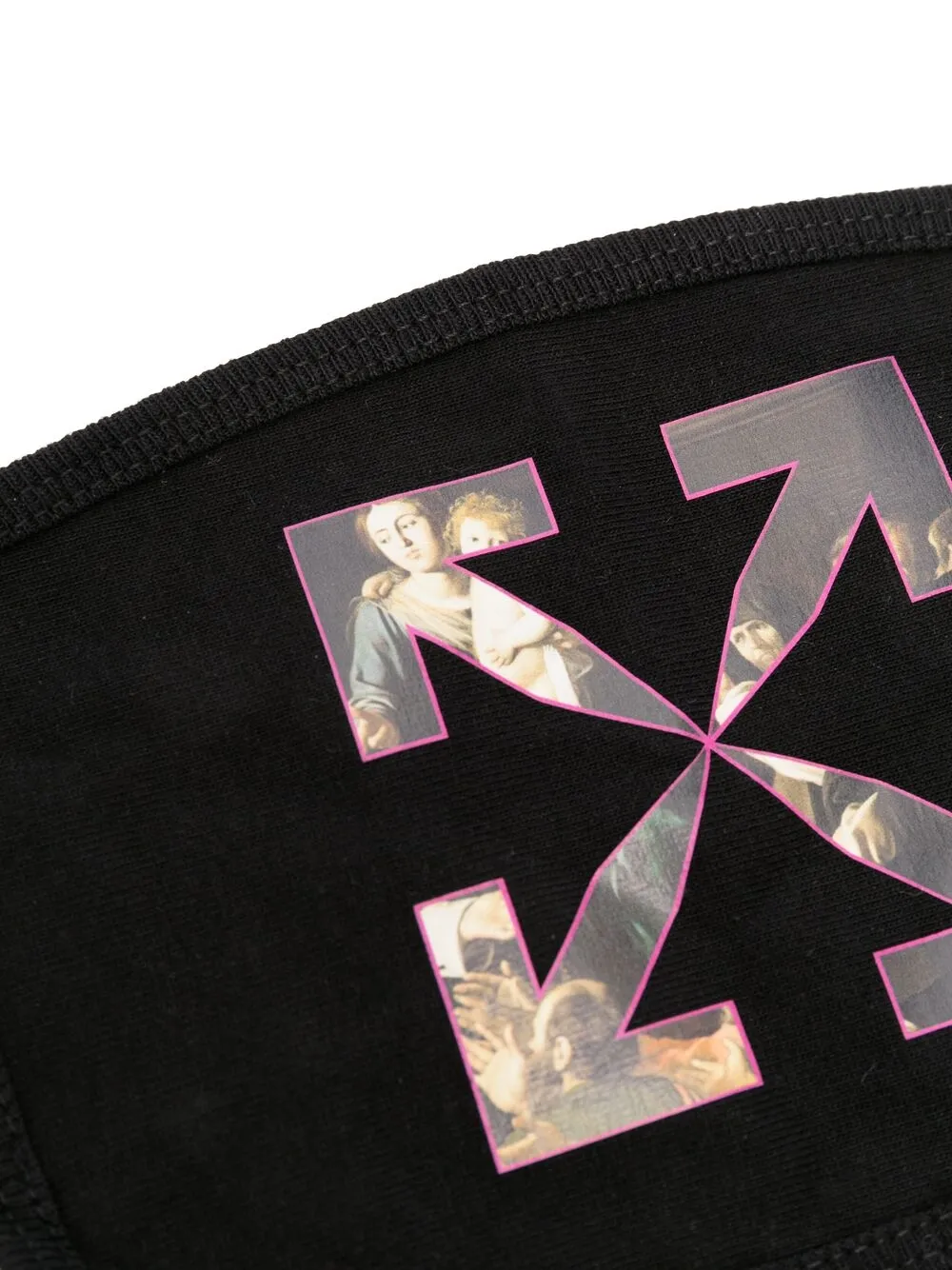 Black cotton Arrows-print face mask from OFF-WHITE featuring signature Arrows motif, adjustable side straps and elasticated straps. This face mask is not a suitable substitute for PPE (personal protective equipment) and we at FARFETCH cannot authenticate any claims of medical or protective benefits of its use. Due to the intended purpose of this product, we will not be able to accept returns unless the item is damaged or faulty upon delivery to you..