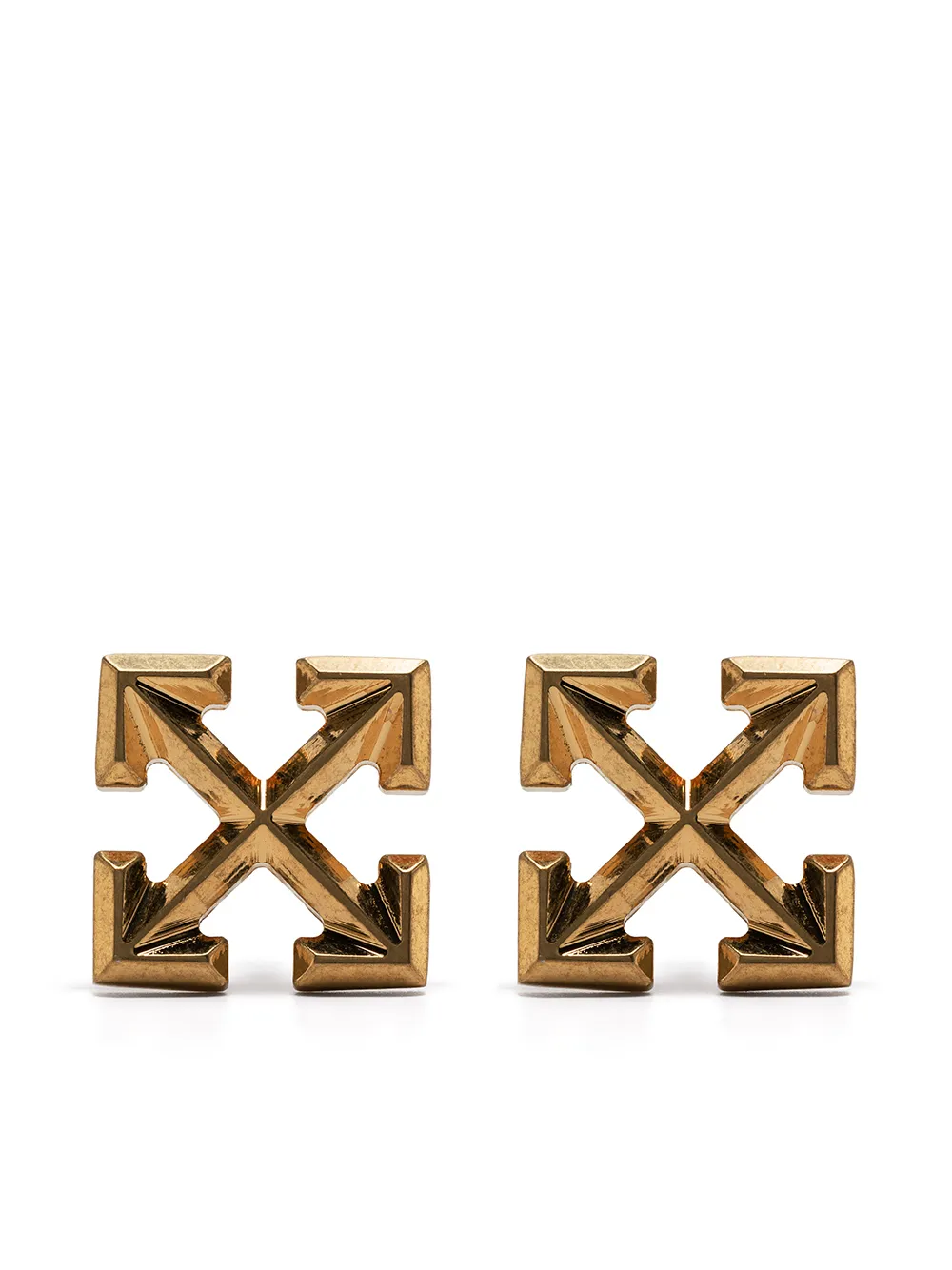 Off-White’s earrings pay homage to one of the brand’s most recognisable signatures. These gold-tone studs depict the iconic Arrows motif.