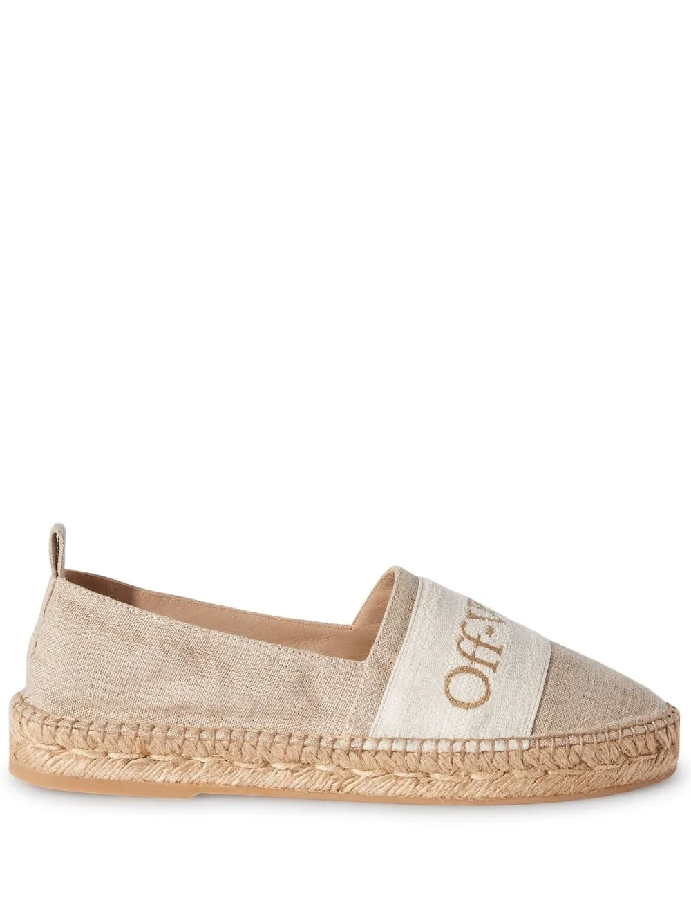 Sleek silhouettes punctuated with industrial detailing and covetable codes are Off-White’s forte, as echoed in these canvas espadrilles. Presented in a muted neutral hue, they’re stamped across the front with logo script in the ubiquitous Helvetica typeface.