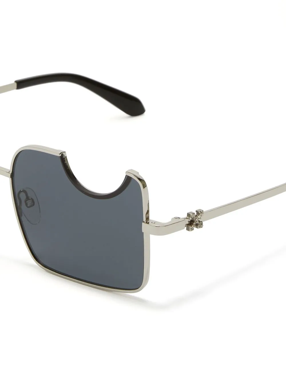 Cady cut-out rectangular-frame sunglasses from OFF-WHITE featuring silver-tone, metal, grey tinted lenses, geometric frame, nose pads, polished finish, cut-out detailing, signature Arrows motif and logo plaque at the arm. These glasses come with a protective case..