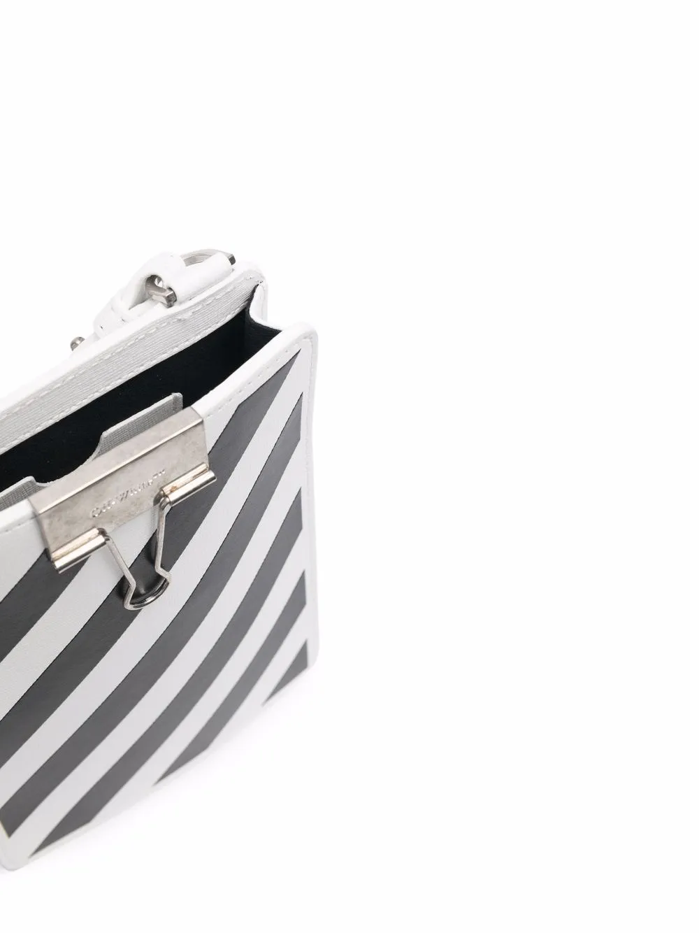 Multiple Off-White themes are combined in the design of this phone bag. Printed with the label’s signature Diag stripe to the front, the accessory is finished with a rear Hands Off logo and an Industrial logo strap.
