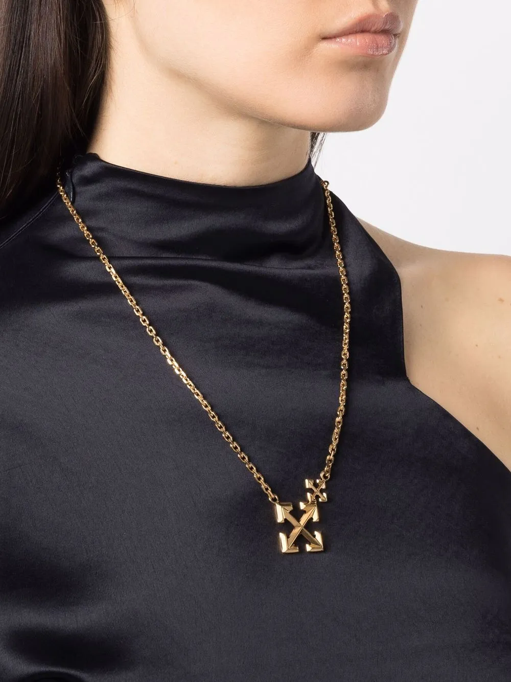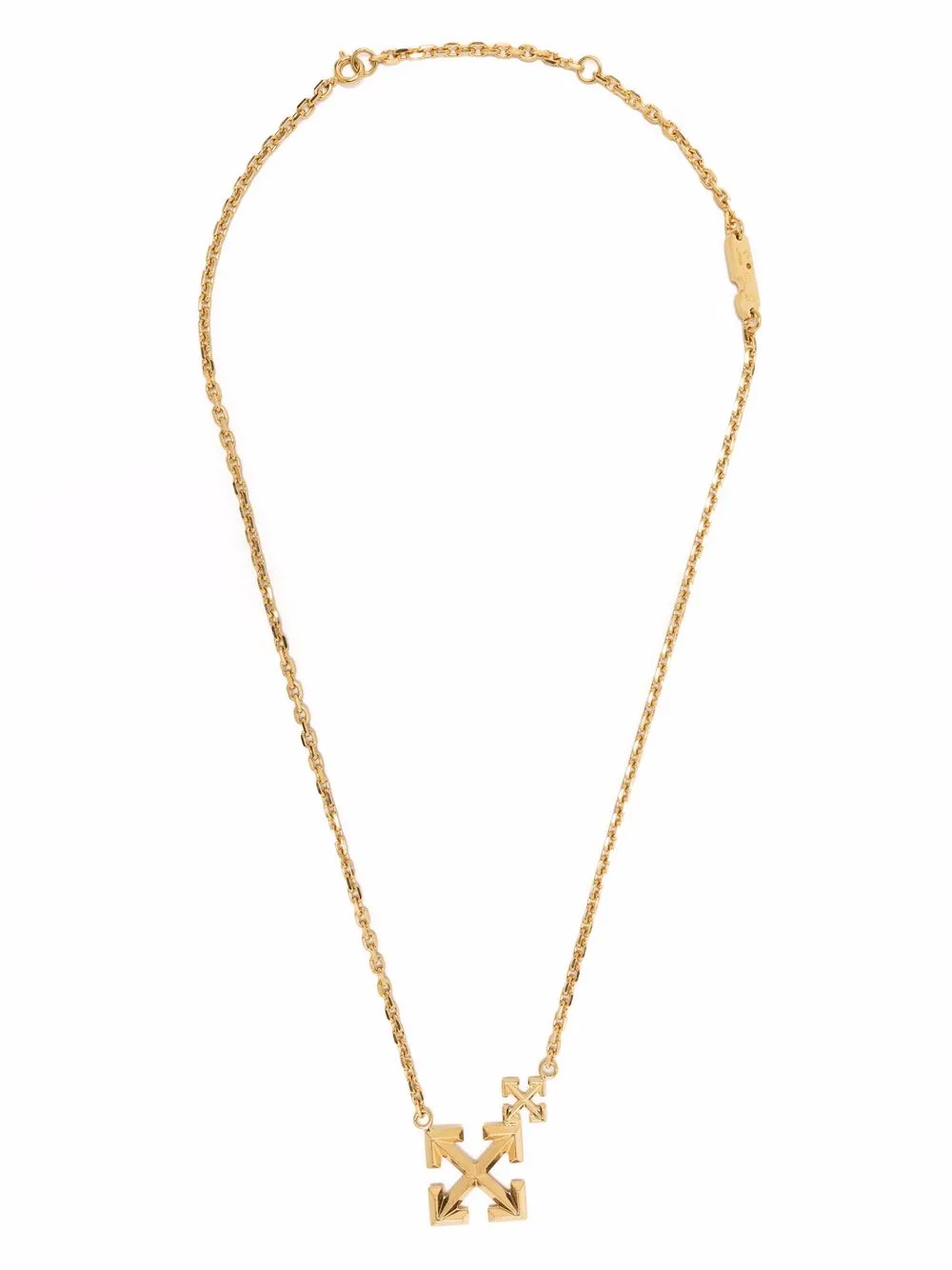 Off-White’s signature Arrows motif appears as a double pendant detail on this chain-link necklace. In a gold-tone design it adds an eye-catching aesthetic.
