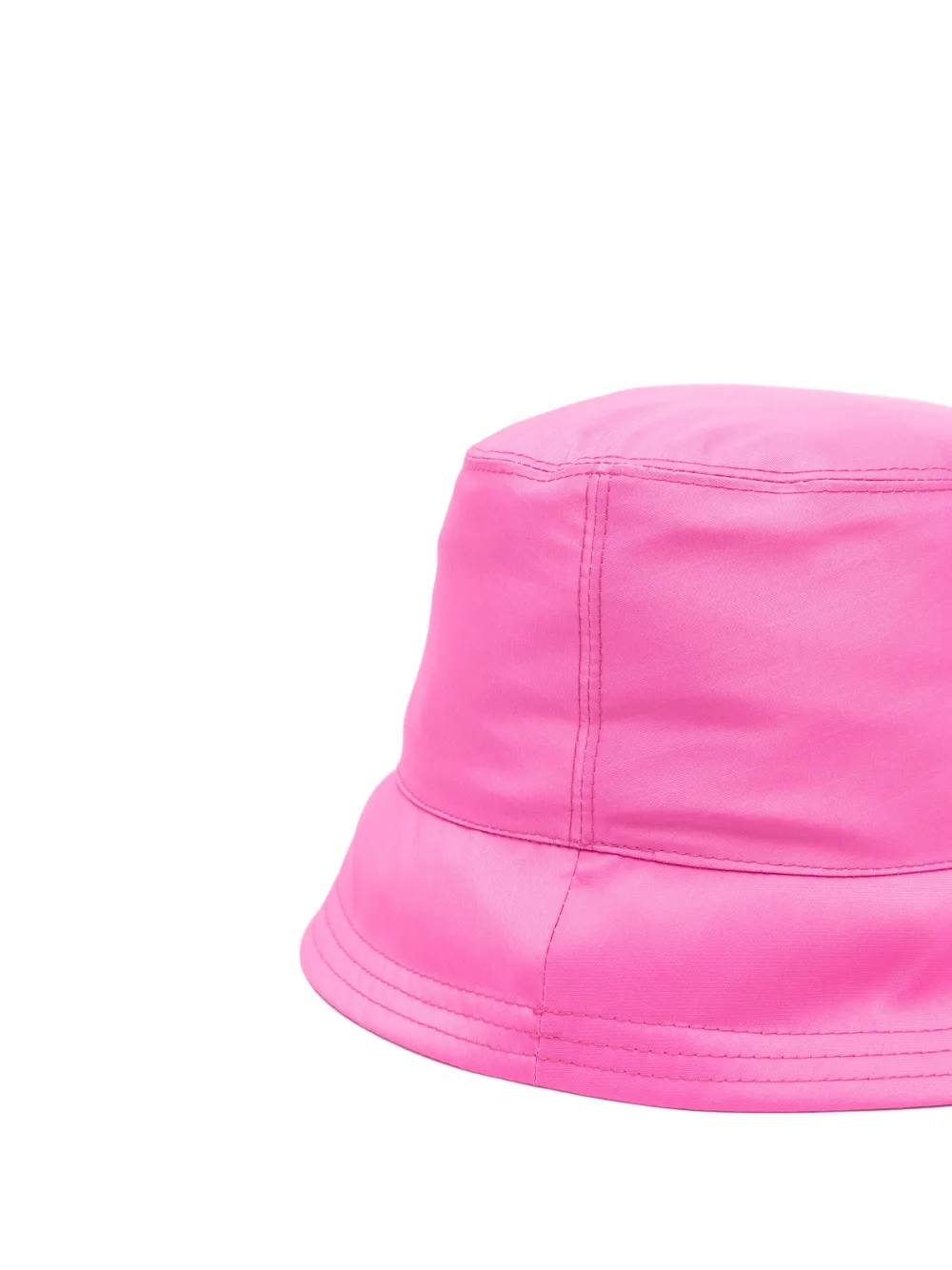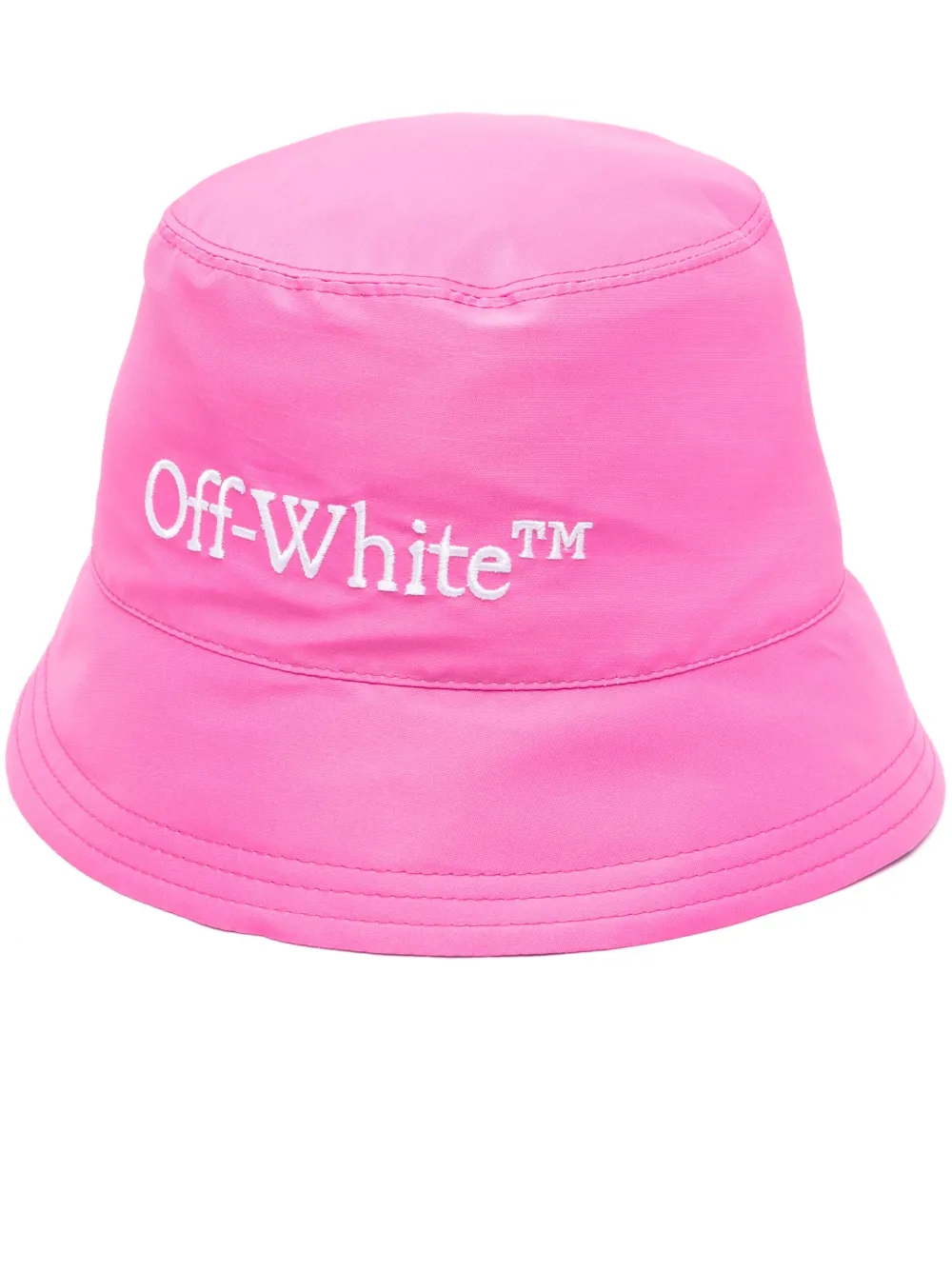 embroidered-logo bucket hat from OFF-WHITE featuring fucsia pink, embroidered logo to the front, flat peak and wide brim. This item is made from at least 50% recycled or upcycled materials. For recycled synthetic clothing products, we highly recommend using a microfibre-catching washing bag to ensure that no microplastics that can pollute water are released in the process..