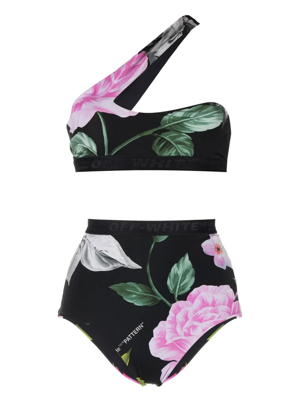 Awash with magnified blooms, this Off-White bikini is summer personified. The two-piece set contains an asymmetric, one-shoulder top with a cut-out detail to the front and a pair of high-rise bottoms styled with a logo-tape waistband.