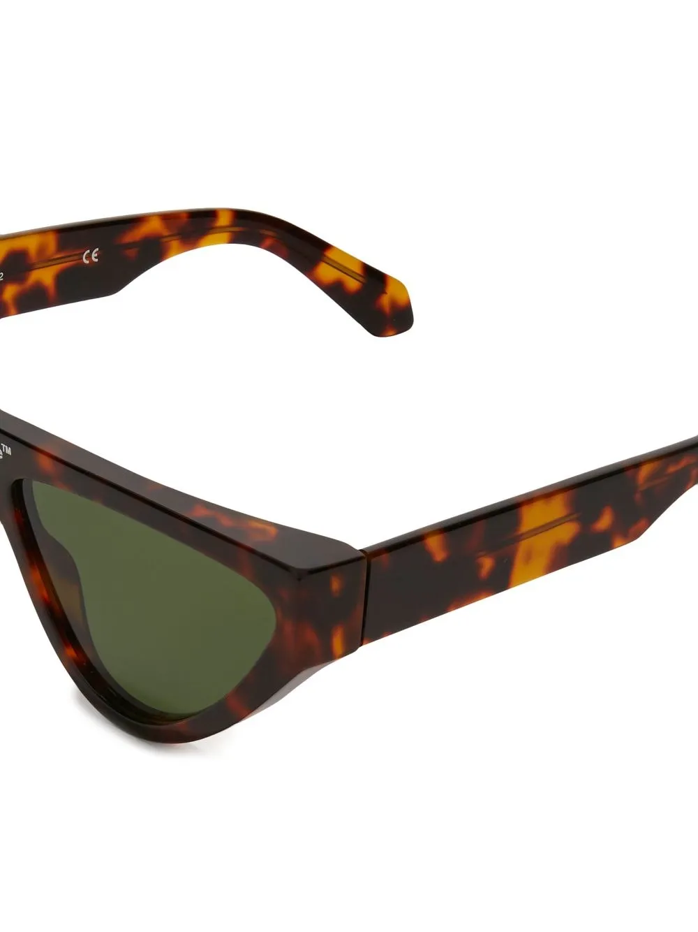 Off-White brings their industrial design approach to their sunglasses collections, evident in the formation of these Gustav sunglasses. Crafted in a classic tortoiseshell brown tone, the pair reimagines the traditional cat eye frame, flattening the brow line for a sharp and confident finish.