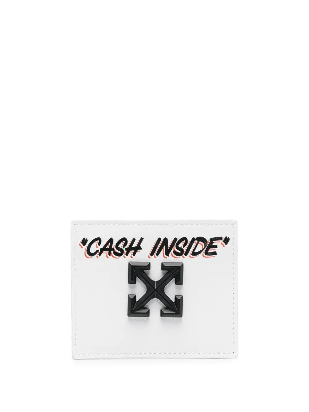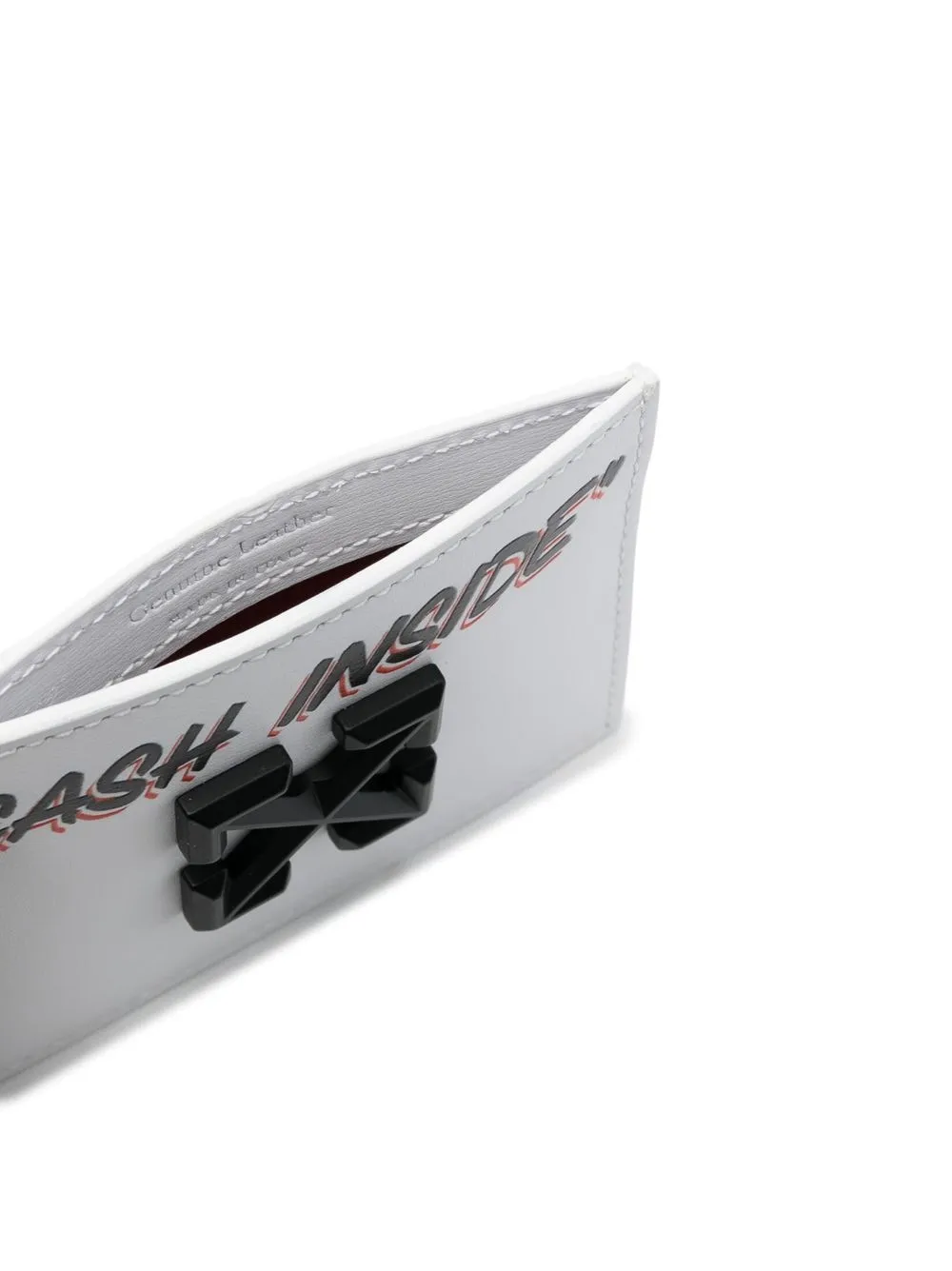 Jitney leather cardholder from OFF-WHITE featuring white, leather, signature Arrows motif, signature quote motif, card slots and rear card slots.