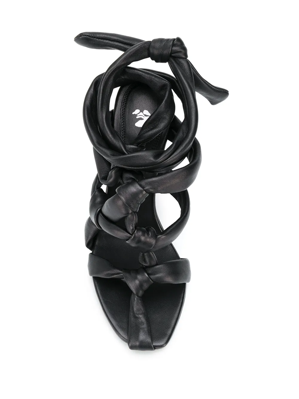 Off-White serves sensual style in the form of these knotted strappy sandals. Crafted from leather, these high-heeled pair have been designed with lightly padded straps that wind up and around the foot for a sleek aesthetic. You’ll certainly be putting your best foot forward. Featuring a tie fastening, a strappy design, a knot detail, an open toe, a high stiletto heel, and a leather sole.