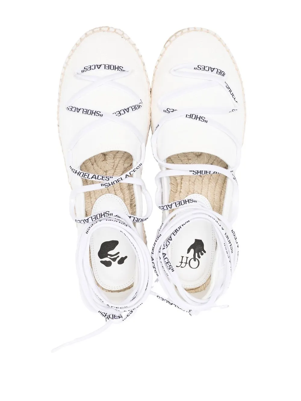 Each season Off-White presents designs that are classic with logo-printed finishes. These espadrilles take on a classic profile with a raffia sole which contrasts the logo laces for a final stamp.