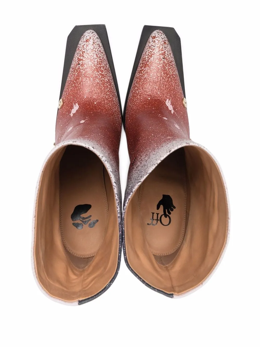 Founded in 2012 by Virgil Abloh, Off-White has established its place in fashion with casual culture-conscious pieces. Decorated with a paint splatter print, these stiletto boots capture the brand’s contemporary aesthetic.