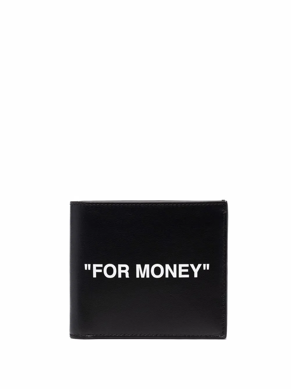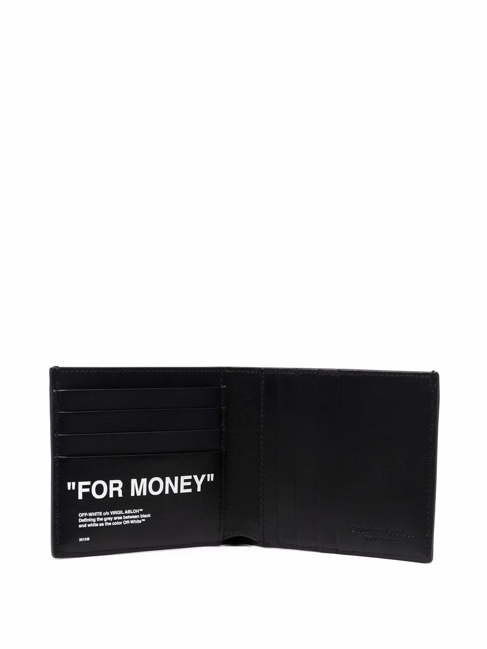 Quotation marks can be recognised as a signature feature that has been used consistently throughout the collections from Off-White. This black bi-fold wallet displays this motif in the form of a white “For Money” print both on the outside and inside.