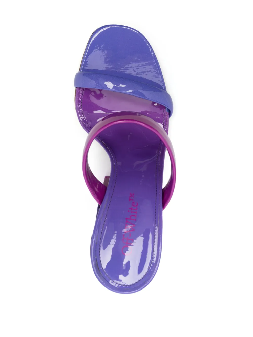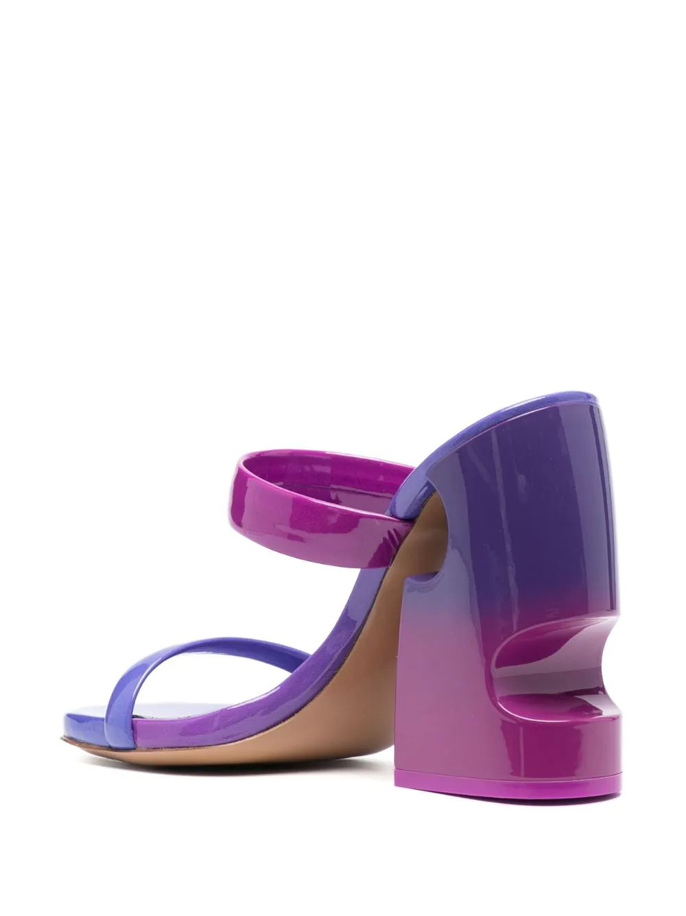First introduced in 2020, the Meteor cut-outs have become one of Off-White’s most adored trademarks. In these Shade Meteor mules, they decorate a 120mm curvy block heel, while the ombré patent silhouette melds pink and purple colourways.