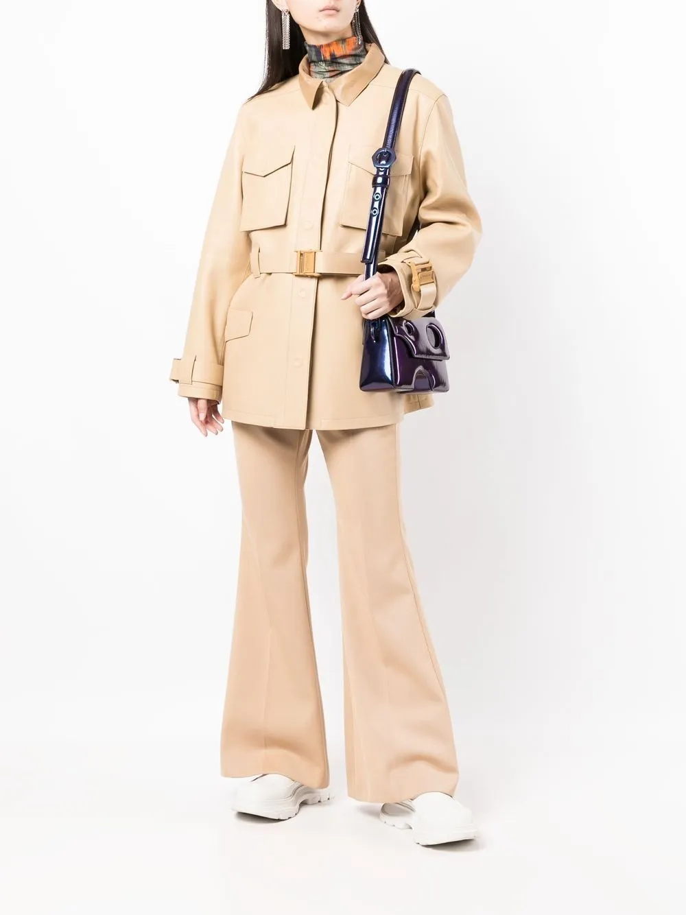 Off-White showcases the brand’s sophisticated design style in this single-breasted coat from the SS22 collection. Featuring a tonal colourway, funnel neck and concealed front fastening, the garment’s gold-tone hardware buckles with engraved-logo detailing reiterate the brand’s signature use of branding.